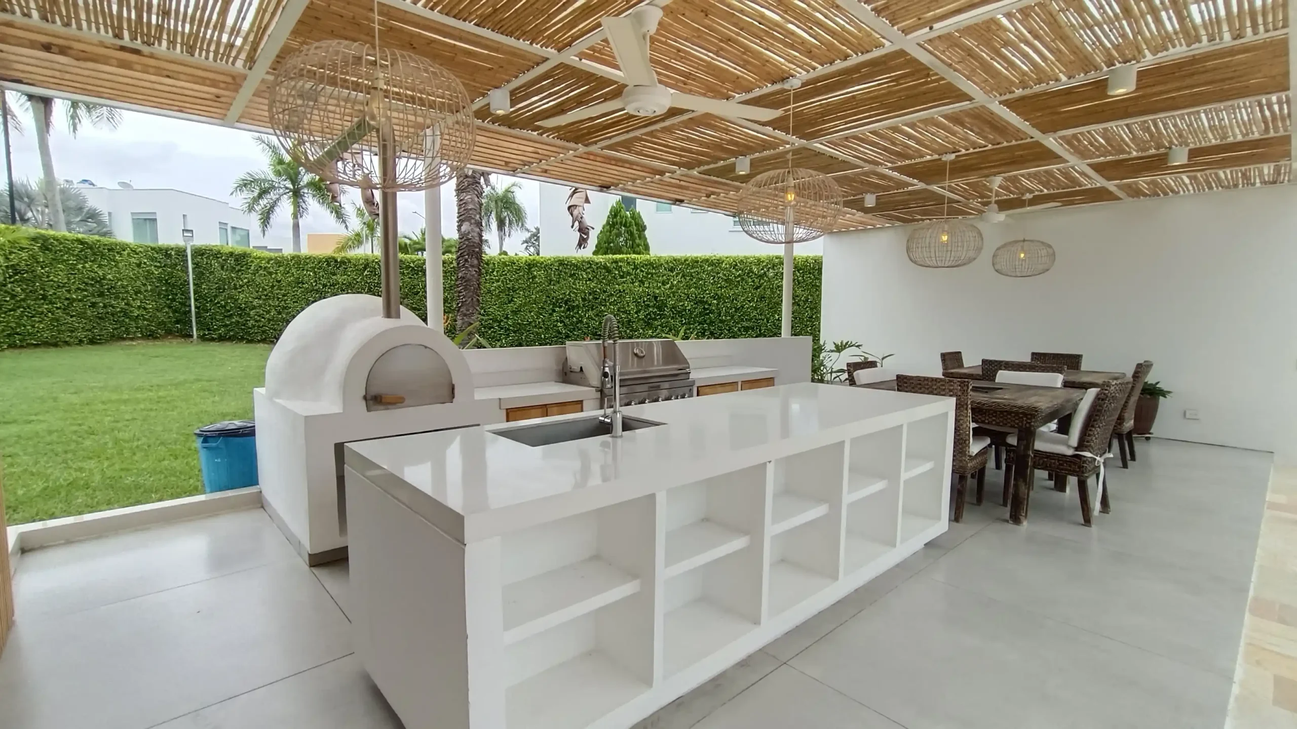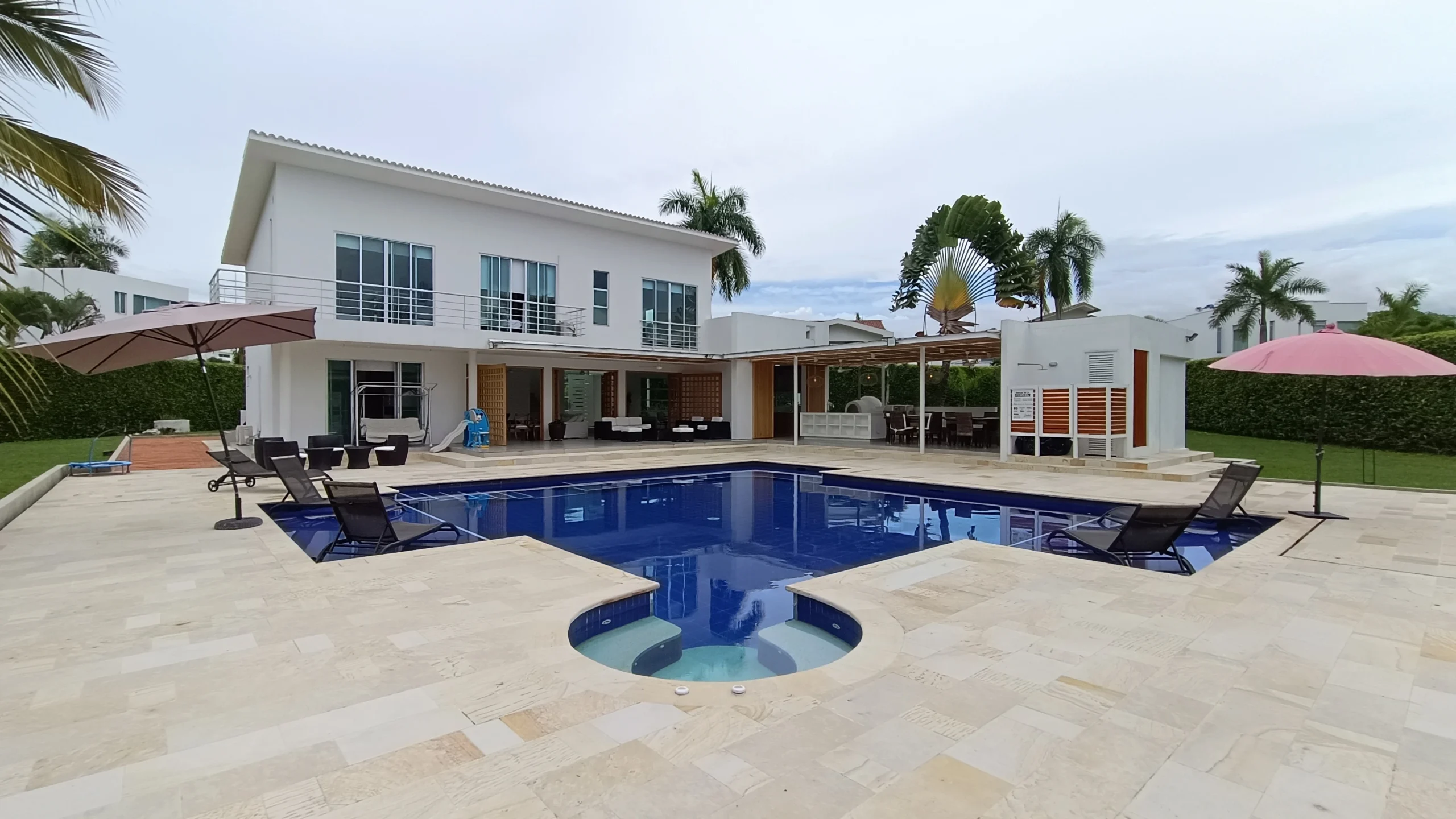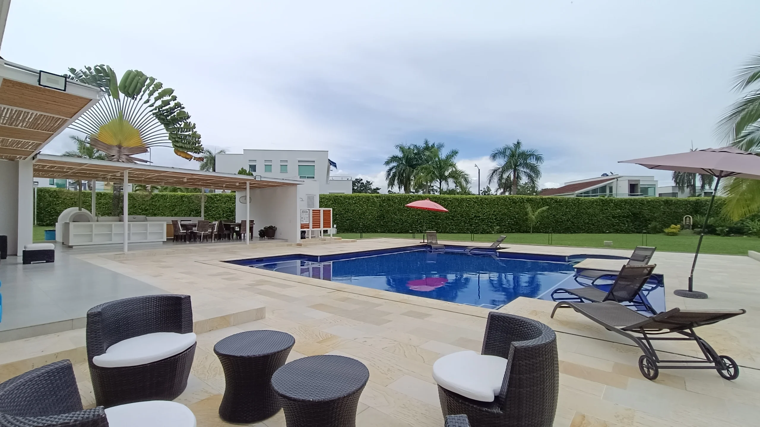 Zonas Sociales BBQ, terraza cubierta, amplia zona verde y piscina con jacuzzi. Capacidad para 14 personas